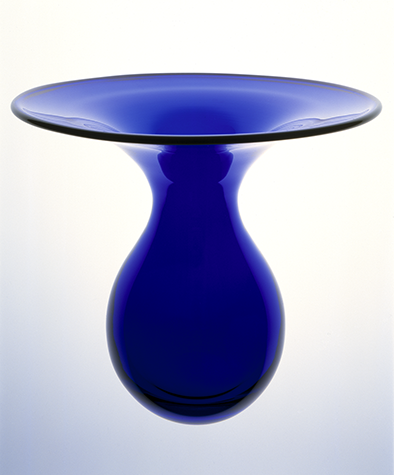 植物を生ける際に花瓶の口元が大きいと、かなり植物の量がないと思ったように生けることができないことから、この時代付近はよく口元の小さい花瓶を製作していました。口元を広げて襟のようにしているのは植物を引き立てるキャンバスのようなイメージから。ショップやおうちの窓際に置くとこのコバルトブルーに光が差し込み、いつまでも眺めていたくなるほど美しいことこの上ありません。私はガラスは光のアートだと思っているので、光とセットでお考え下さい。形状故に安定感はあまりないので、手が当たりにくいところに置くことをお勧め致します。